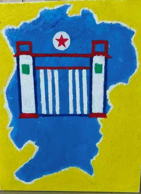 这幅肌理画,以江西省美术馆建筑为核心元素,以纪念抗战胜利80周年。画面中,蓝底勾勒出江西地域轮廓,象征这片土地的历史承载;美术馆红门与红星意象,既锚定文化地标,又呼应抗战精神的红色基因。肌理笔触的厚重质感,让建筑与地域的融合更具历史纵深感,寓意江西以文化艺术为载体,铭记抗战岁月的热血担当,借美术馆这一文化之门,传递八秩以来薪火相传的爱国情怀与精神力量,让抗战记忆在艺术肌理中永续传承。