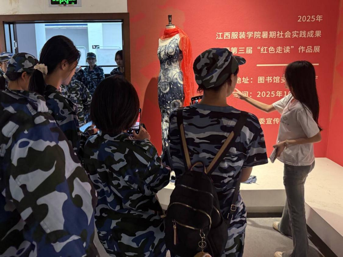 服装工程学院讯(撰稿:黄童)为纪念中国人民抗日战争暨世界反法西斯战争胜利80周年,引导新生从红色历史中汲取专业力量,10月14日,服装工程学院组织25级新生前往参观暑期社会实践成果暨第三届“红色走读”作品展。以视觉化、沉浸式的方式,让新生在多元艺术载体中沉浸式感受红色文化魅力、体悟青年创意与红色精神的融合。