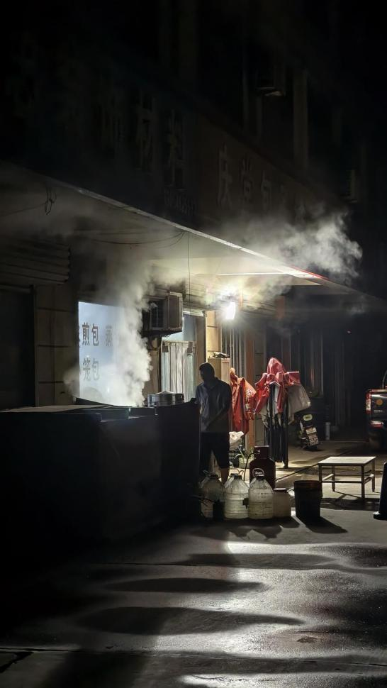 这是一幅聚焦市井深夜烟火气的摄影作品。画面呈现了凌晨街头的包子铺场景,首先摄影师利用明暗对比,将灯光与蒸汽交织成富有层次的视觉语言,突出深夜劳作的氛围感,让平凡场景更具艺术张力。题材选取充满生活质感的题材,以“深夜烟火”触动观者对市井温情、谋生不易的共情,展现平凡中的不凡。通过凌晨仍在忙碌的身影、蒸腾的热气,传递出劳动者的坚韧与担当,能激发对劳动的尊重,理解劳动不分昼夜、不分领域,每一份付出都值得肯定。让观众明白平凡劳动是城市活力与烟火气的基石,深化对劳动教育中“劳动促发展”的认知。