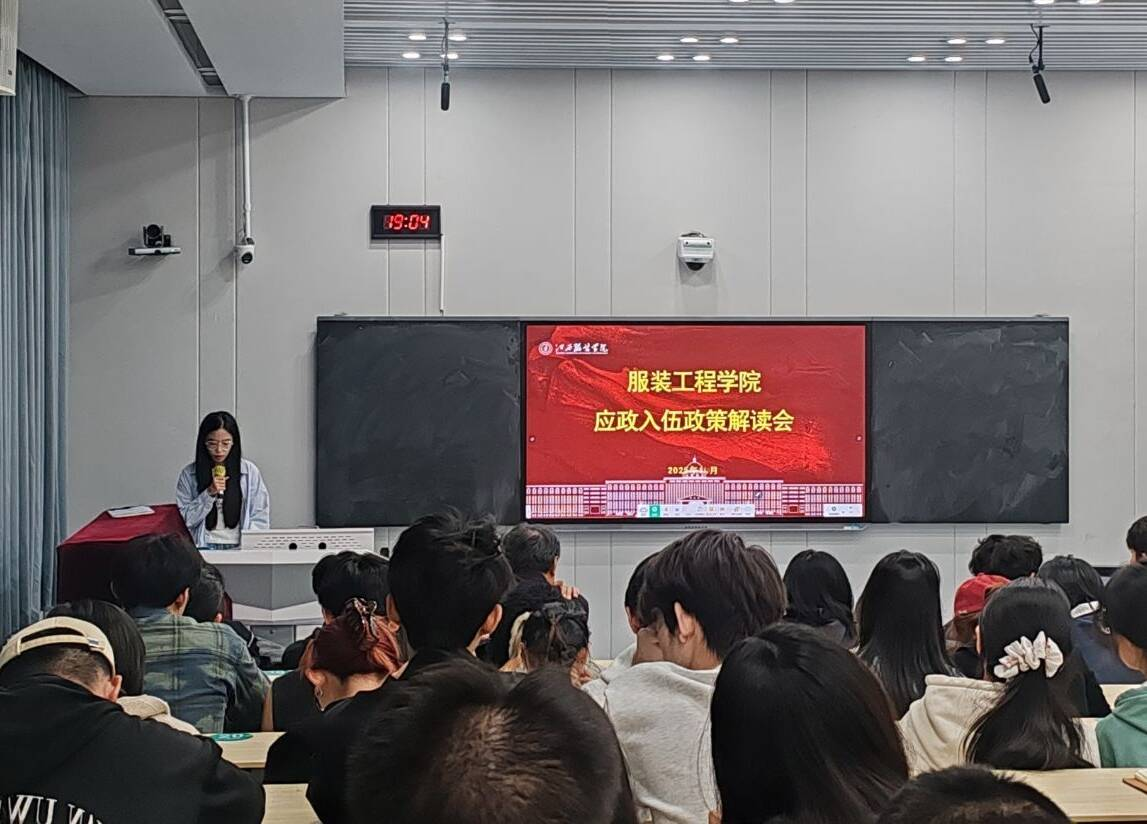 服装工程学院讯(撰稿:黄可天、沈子寒)为积极响应国家2025年国防动员与兵员征集工作部署,11月3日晚上7:00,服装工程学院在主教楼-110教室举办了2025年应征入伍政策宣讲会,学院党委书记彭波、学工办副主任洪婷及全体毕业班班主任参加了会议,宣讲会由毕业班辅导员尚子敬主持。尚子敬以“逐梦军营,不负韶华”为主题,为现场有志青年全面解读了征兵政策,从报名条件到退役保障,从在役优待到学业安排,用详实的内容、生动的讲解,点燃了学子们携笔从戎的热情。