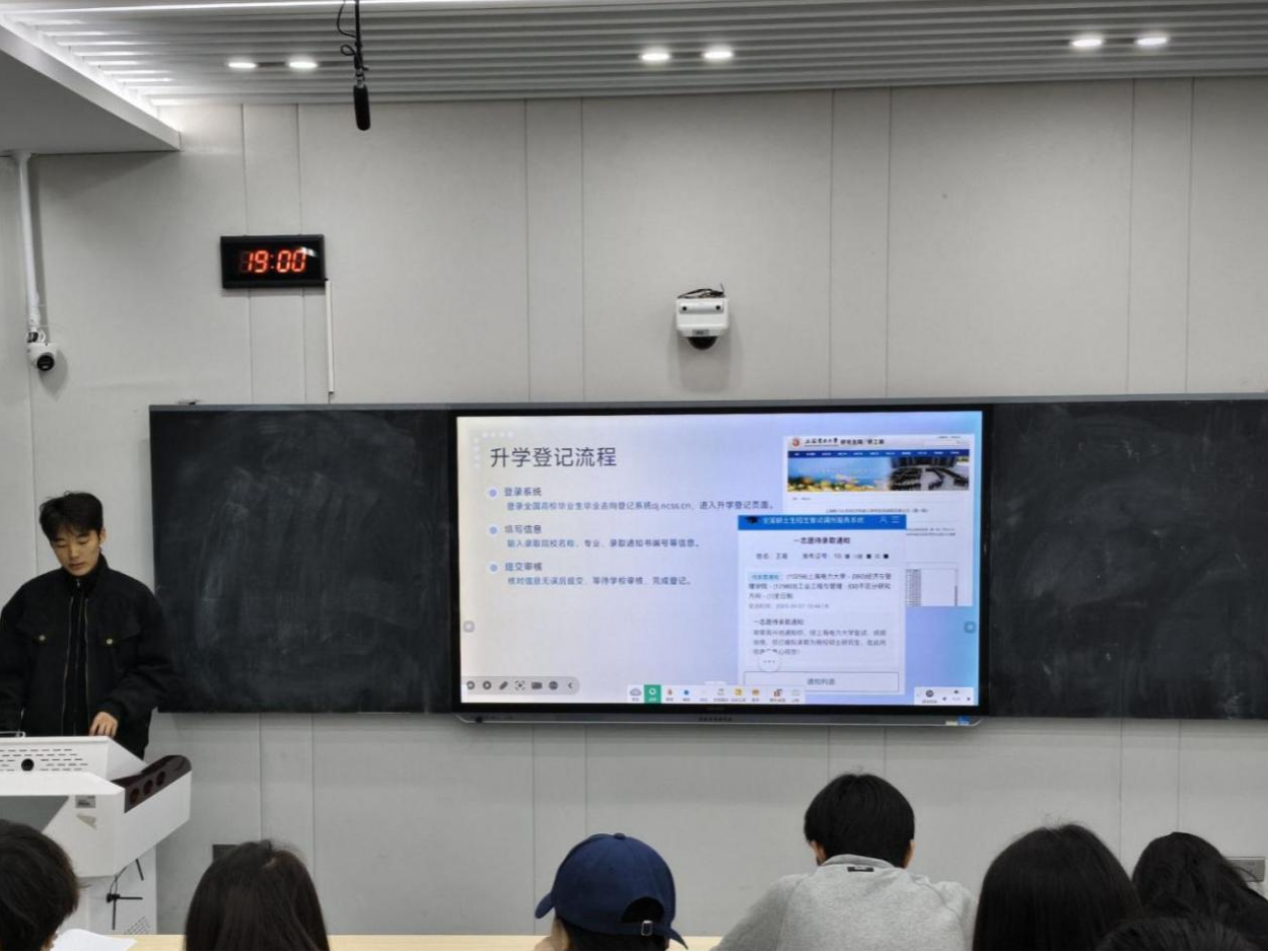 随后,班长现场演示了系统登录、信息核验、分类填报等具体流程,特别提醒同学们要注意登记时间节点,及时留意学校通知,避免因逾期影响档案转递。