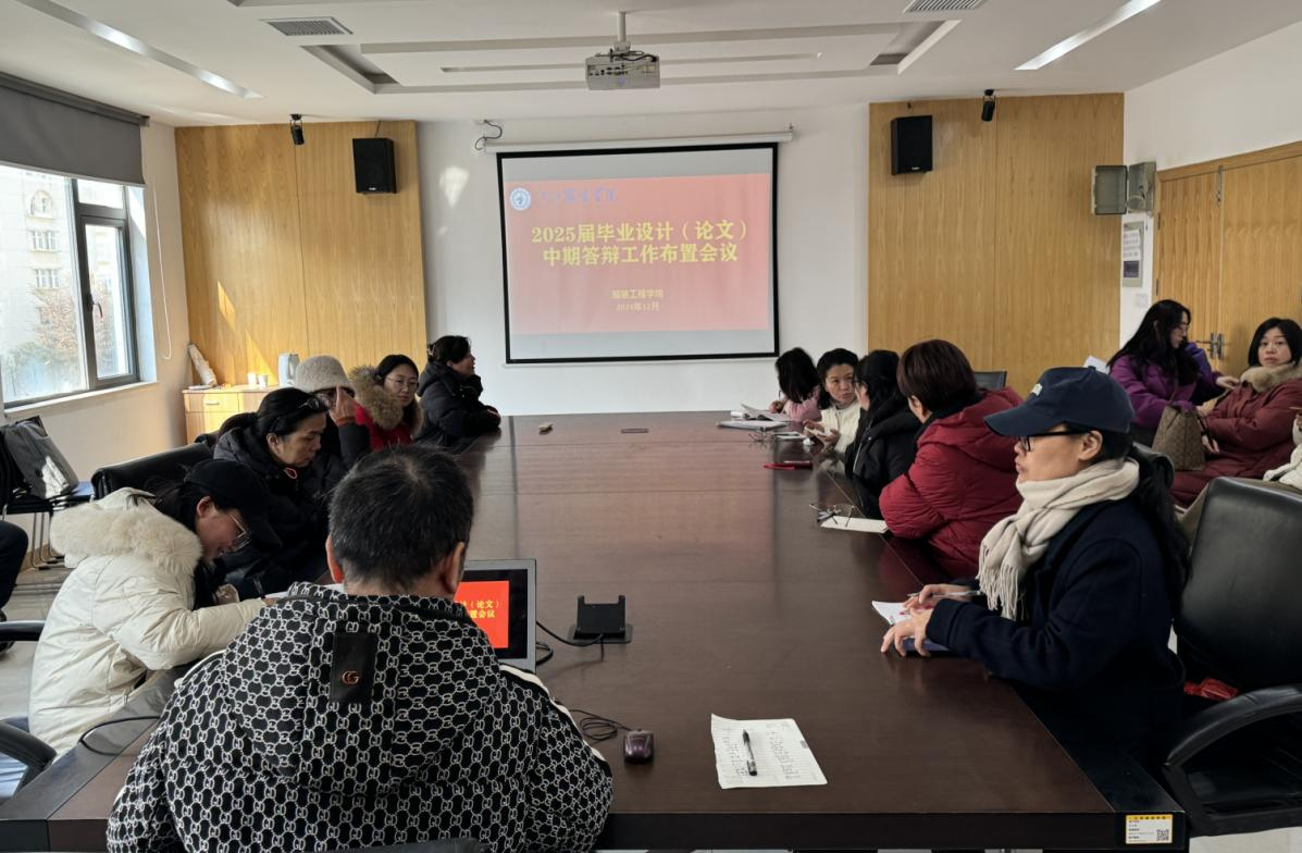 为进一步加强本科毕业设计(论文)工作的过程规范管理,及时掌握毕业设计(论文)的进展情况,服装工程学院于 2024 年 12 月 19 日,在学院会议室召开了 2025 届毕业设计(论文)中期答辩工作布置会议,本次会议由学院教学副院长赵永刚主持,全院毕业设计(论文)指导教师参与了此次会议。