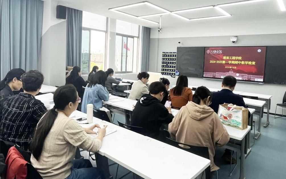 为迎接本科审核评估,全面提高教学文档材料质量。服装工程学院于 10 月 22 日下午 13:30 在主教楼 333 智慧教室开展期中教学检查工作。此次检查覆盖了全院所有教研室的教师,充分体现了学院对教学质量的严格把控和持续改进的决心。