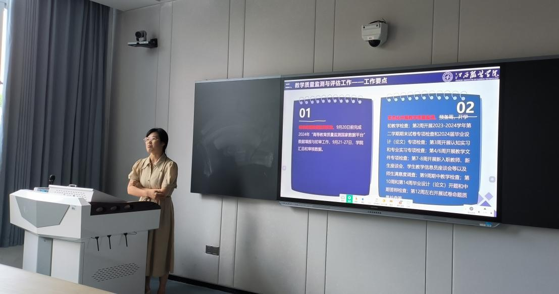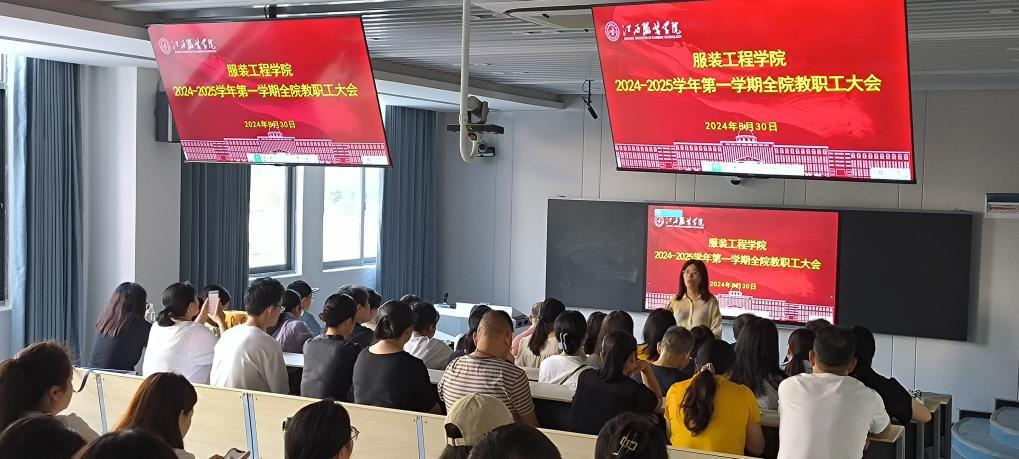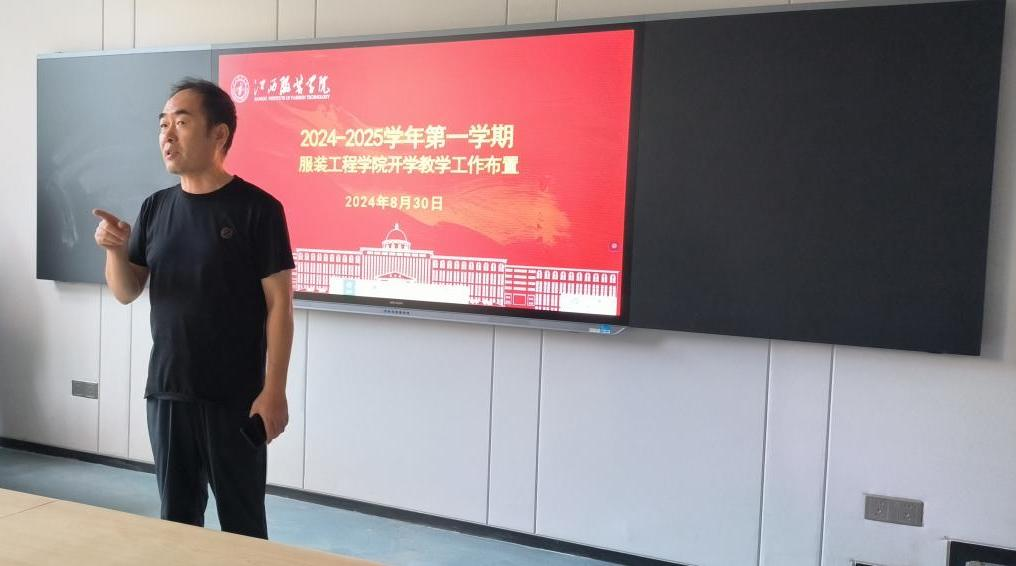 为了深化课堂教学改革,促进学校的教学工作规范,加强教学常规管理工作,助推教学质量提高。8 月 30 日上午 9 点在主教学楼-110 智慧教室召开服装工程学院 2024-2025 学年度第一学期开学初教学工作会议,会议由院长陈娟芬主持,书记彭波、副院长赵永刚、廖师琴及全体教师参会。
