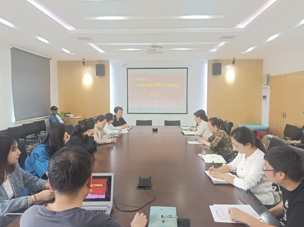 为加强本科毕业设计质量管理,提升学院学生毕业设计规范性,同时提升人才培养质量,突出专业特色,稳步推进学院 2024 届本科毕业设计工作。服装工程学院于 4 月 24 日下午12:30 在会议室召开了 2024 届本科毕业设计答辩工作会议。服装工程学院全体教师参加了本次会议,会议由服装工程学院赵永刚副院长主持。