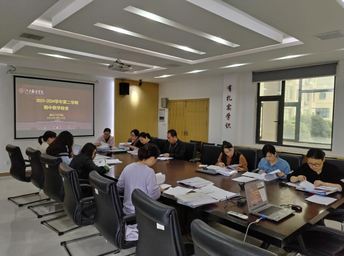为全面了解本学期教学运行情况,加强常规教学管理,强化教学质量监控,持续深化教育教学改革,提升教学质量,根据学院教学工作安排,2024 年 4 月 18 日在服装工程学院院会议室开展了本学期期中教学检查工作。赵永刚副院长、廖师琴副院长、各教研室主任以及骨干教师参与了本次期中教学检查工作。