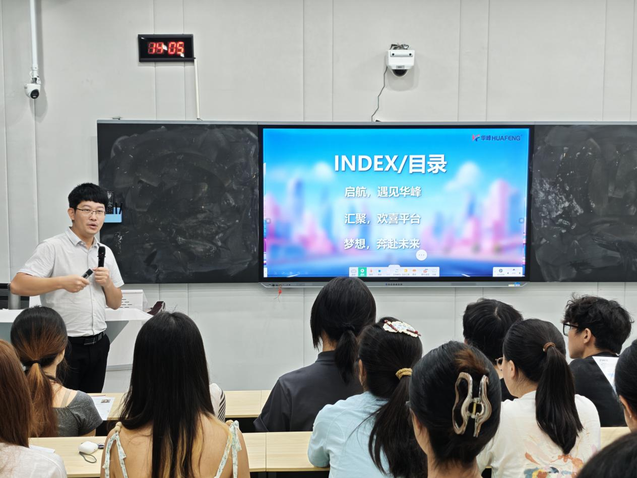 宣讲环节,乐传城以“启航,遇见华峰”为开篇,从企业发展历程、核心业务领域、行业布局及市场竞争力等方面,全面介绍了公司的基本情况,使同学们对企业的整体实力与发展前景有了直观认识。随后,以“汇聚,欢喜平台”为主题,重点阐述了公司为员工提供的多元化发展平台,包括完善的办公环境、高效的协作团队、丰富的行业资源对接机会等,展现了企业吸引和凝聚人才的优势。最后,在“梦想,奔赴未来”环节,乐传城详细解读了公司的人才培养体系与晋升机制,从新员工入职培训、岗位技能提升计划到管理岗与技术岗双通道晋升路径,清晰呈现了员工在企业的成长脉络,为同学们规划职业发展提供了参考。
