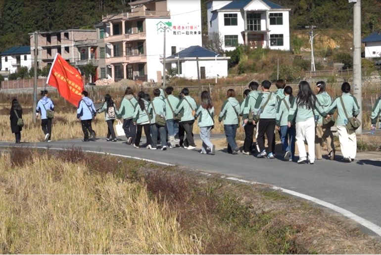 下午,重走红军路活动在马源村正式开启。山路蜿蜒崎岖,学子们相互扶持、并肩前行,汗水浸湿衣衫,脚步却愈发铿锵。脚下的泥泞之路,让大家真切体会到革命先辈的艰辛不易,更懂得新时代的“长征路”同样需要脚踏实地、奋勇争先。党的二十大报告中“用新的伟大奋斗创造新的伟业”的号召,在重走红路的实践中愈发清晰有力。