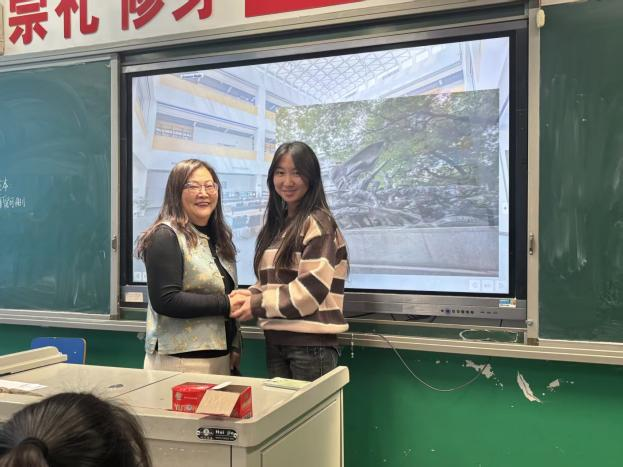 交流尾声,她将纪念品分发给同学们,告诉大家:“希望这些小礼物能陪伴大家走过备考时光,也欢迎大家报考江西服装学院,一同在设计的世界里追逐梦想。”同学们纷纷围上来提问,从高考志愿填报到大学生活规划,她一一耐心解答,现场氛围热烈而温馨。