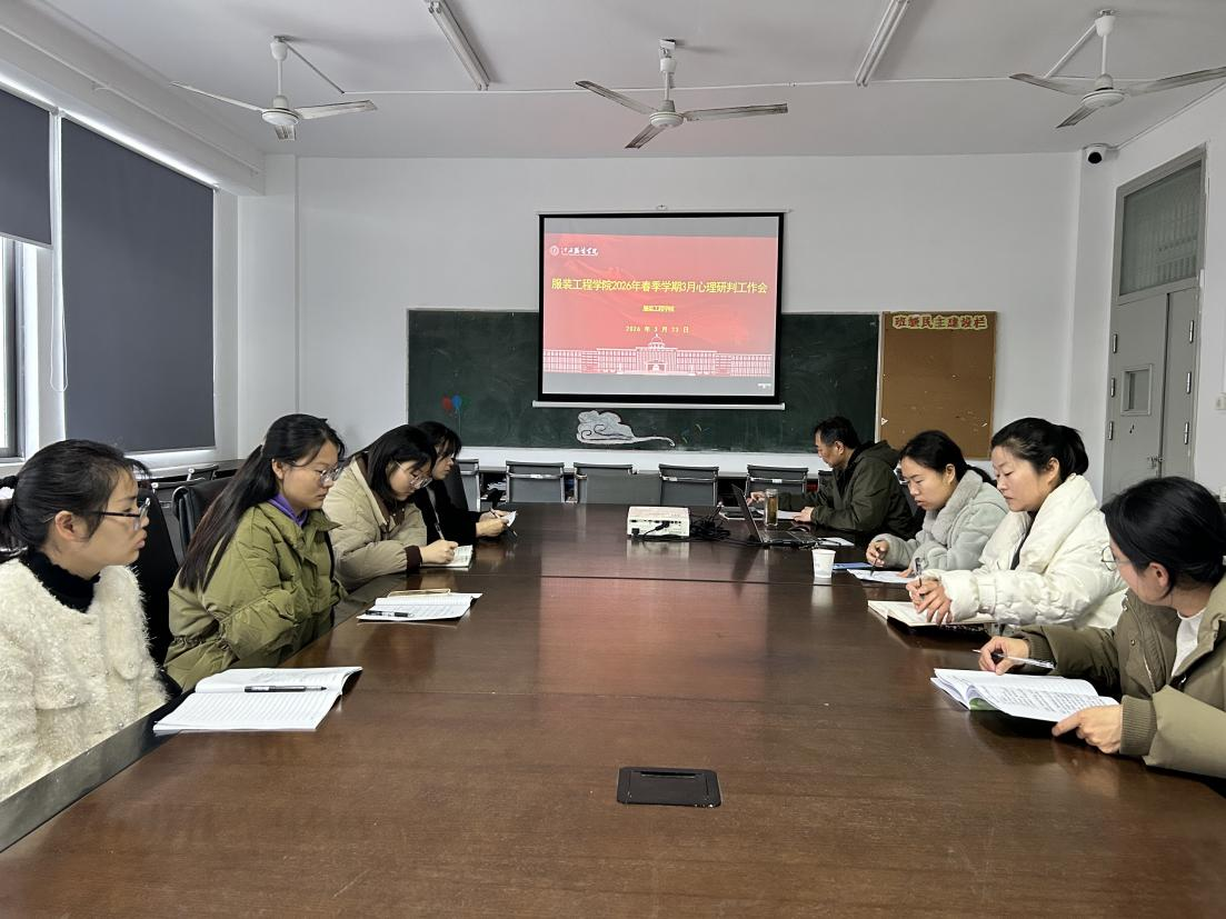 为切实做好春季学期学生心理健康教育工作,精准掌握学生心理动态,3月23日上午9:00,服装工程学院于主教楼204学院会议室,召开春季学期三月份学生心理健康教育工作研讨会,学院党委书记彭波、副书记张敬玲及全体辅导员参加了会议,会议由学院心理专干卢永红主持。