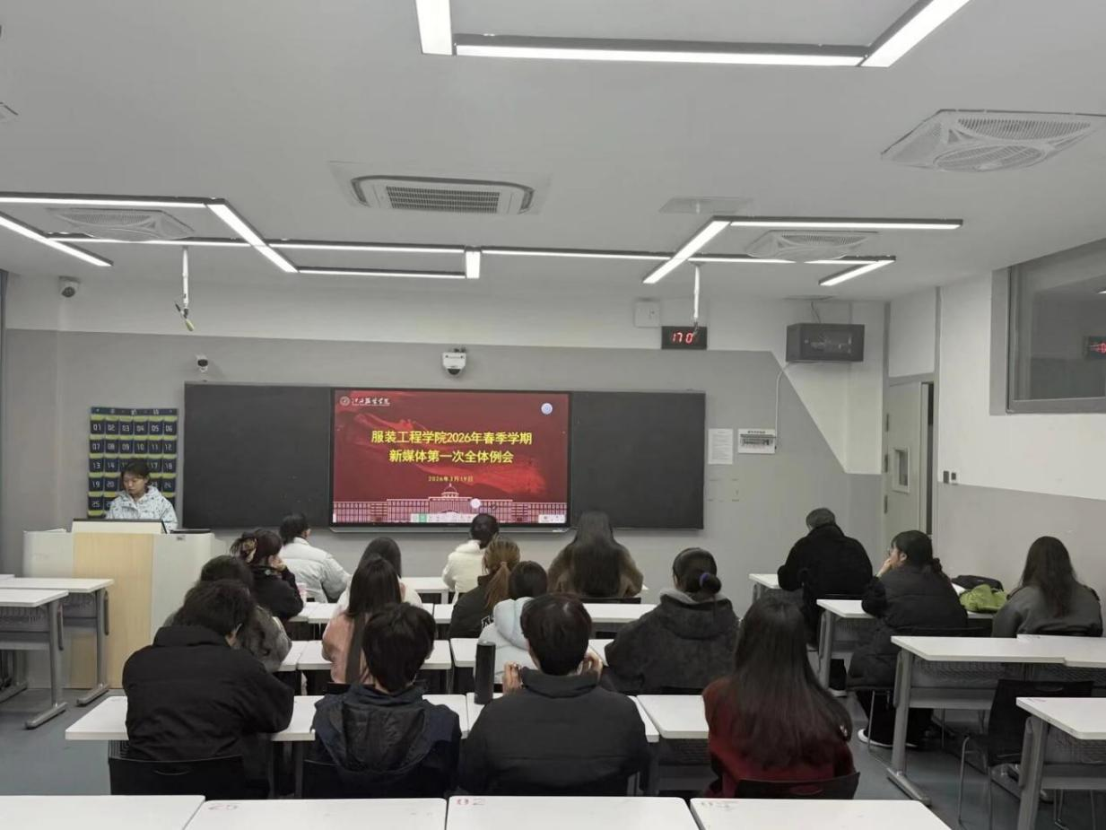 为进一步规范新媒体工作流程,提升工作质量,明确新学期工作方向,3月19日下午5:00,服装工程学院在主教楼333教室召开了2026年春季学期新媒体部门第一次全体例会,会议由新媒体部门负责人刘蕊主持。