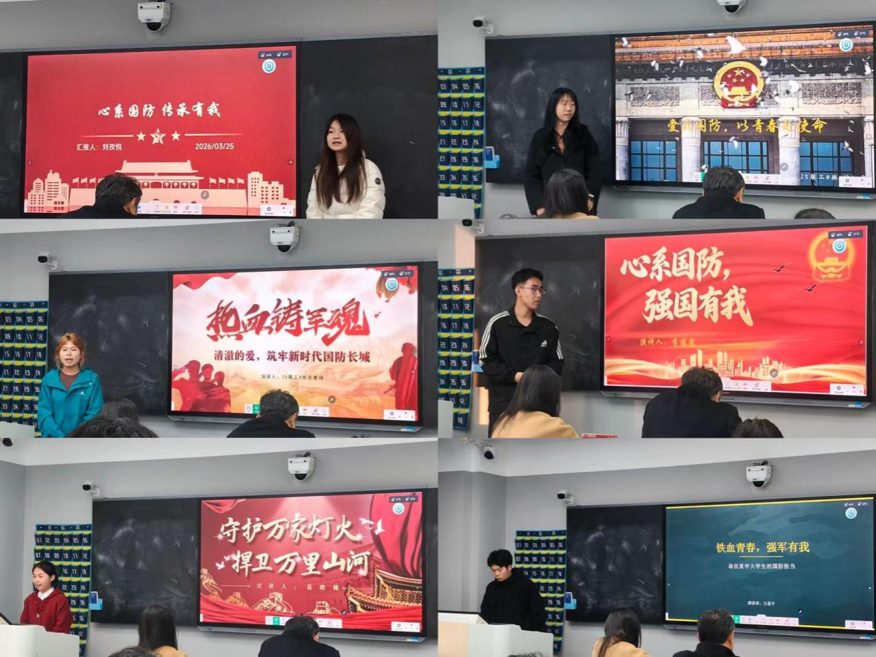 比赛现场气氛庄重热烈,参赛选手们紧扣国防教育核心主题,结合自身成长感悟与时代使命,以饱满的精神状态、真挚的情感表达,带来了一场场兼具思想深度与感染力的精彩演讲。有的选手回溯我国国防建设的光辉历程,诠释青年一代传承红色血脉、守护家国安宁的责任与担当;有的选手结合自身退伍复学的亲身经历,讲述新时代大学生军人的初心坚守,生动展现了退役大学生“退伍不褪色、建功新时代”的国防担当;还有选手用真挚的语言诉说家国情怀,号召同学们以青春之力守护山河无恙。他们都从不同维度阐述了对国防建设的深刻理解,展现了服装工程学院学子心系家国、勇担使命的青春风貌。