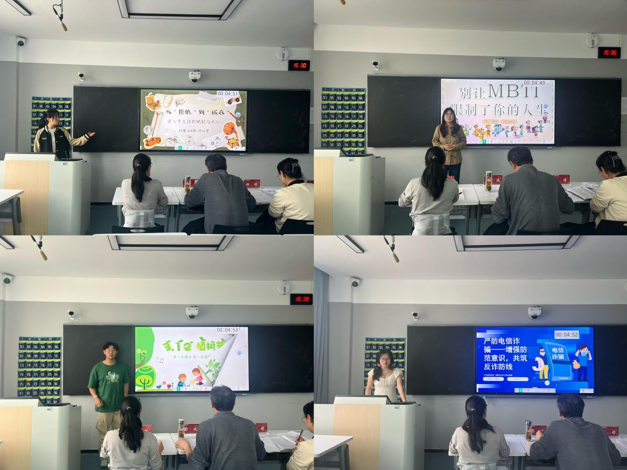 本次复赛围绕爱校荣校、诚信感恩、安全教育、心理健康教育、理想信念教育、职业生涯规划与指导、班级文化建设七个主题展开,各参赛班长紧密结合班级日常管理、学生思想动态及专业学习实际,打造有温度、有深度、有实效的主题班会课。比赛现场,各位班长精心筹备、各展所长,有的结合学院专业特色,将爱校荣校教育融入班级成长故事,激发学子归属感与荣誉感;有的聚焦校园安全、心理健康等实用内容,用真实案例、互动问答的形式,让教育内容入脑入心;有的立足理想信念与职业规划,引导同学们明确奋斗方向,筑牢青春信仰;还有的围绕班级文化建设,分享班级管理经验,凝聚班级向心力。