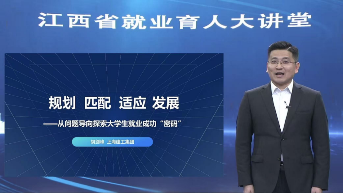 本次直播课特邀胡剑峰担任主讲嘉宾,胡剑峰是全国现代服务业专业人才库入库专家,高级职业生涯规划师,担任上海建工集团华中区域总部党委副书记、副总裁等职务,兼具一线就业指导经验与专业理论积淀。胡剑峰以《从问题导向探索大学生就业成功“密码”》为主题,围绕大学生成功就业的四个阶段、就业过程中存在的问题以及成功就业的密码三大板块展开分享,为学院师生剖析就业关键要点,提供了极具针对性的就业指导思路。