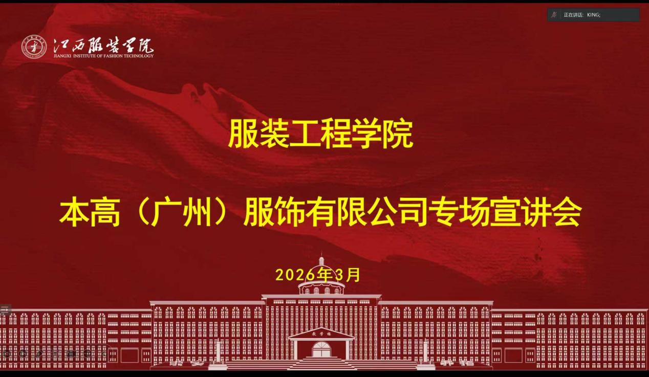 为搭建校企人才对接桥梁,助力学子精准就业,3月5日晚7:00,服装工程学院举办了本高(广州)服饰有限公司专场宣讲会。