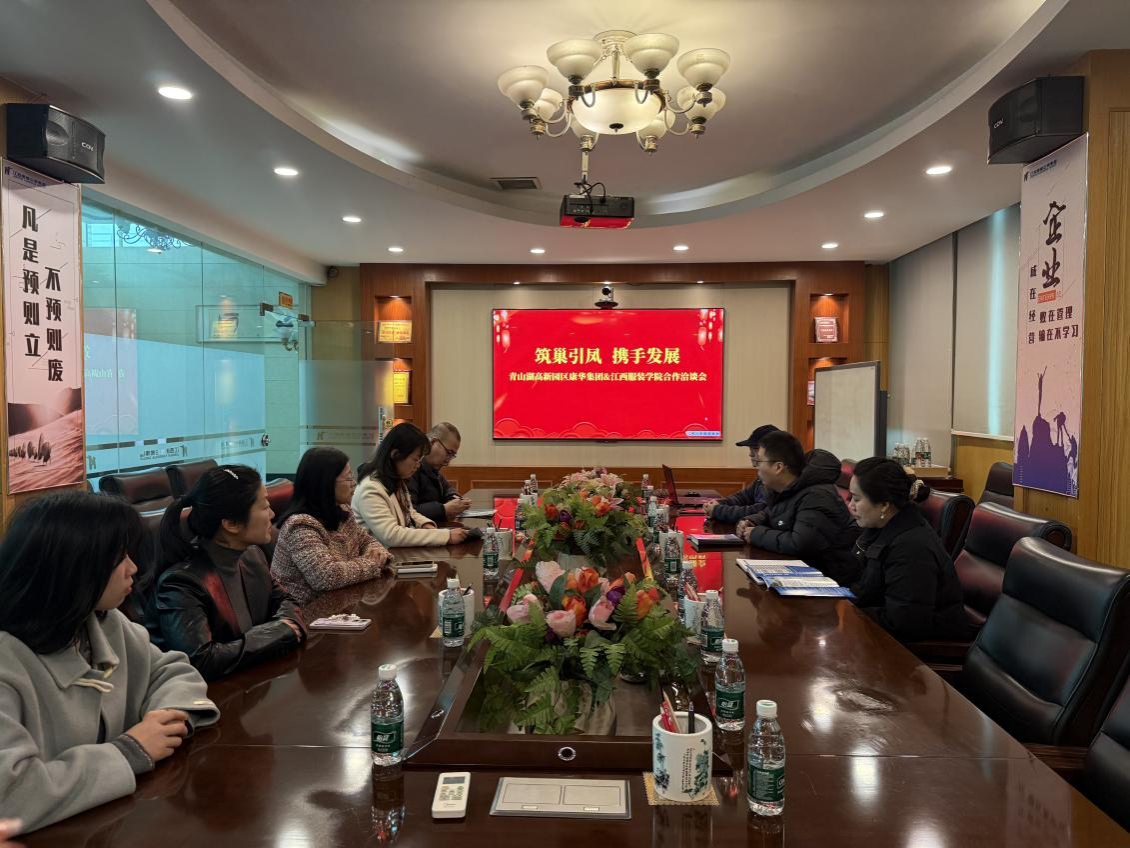 随后,走访组一行来到江西康华企业发展集团有限公司。在企业负责人的陪同下,走访组实地参观了企业的办公区域、产业园区及相关业务展厅,直观了解企业的发展历程、产业布局与经营现状。作为集商业贸易、现代物流、数字经济等为一体的综合性产业集团,康华集团先后荣获江西省民营企业一百强、江西民营企业服务业二十强等多项荣誉。座谈会上,企业负责人详细介绍了企业的人才需求计划、岗位晋升通道及薪酬福利体系,重点围绕智慧家居、电子商务等领域的岗位需求与走访组进行了精准对接。张敬玲副书记表示,服装工程学院将依托专业优势,为企业输送兼具设计能力与实践素养的复合型人才,同时希望双方能在实习基地建设、校企联合培养等方面开展更深层次的合作。