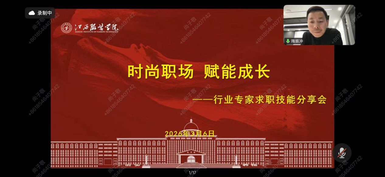 为搭建在校学生与优秀校友的沟通桥梁,帮助服装工程学院学生解锁时尚职场成长密码,明晰职业发展方向,提升就业技能,3月6日晚7:00,服装工程学院特别邀请了优秀校友隋振冲作了一场“时尚职场,赋能成长”求职技能专题分享会。服装工程学院毕业班学生齐聚一堂,聆听学长职场心路历程,汲取时尚行业成长经验,为未来的职业之路积蓄力量。