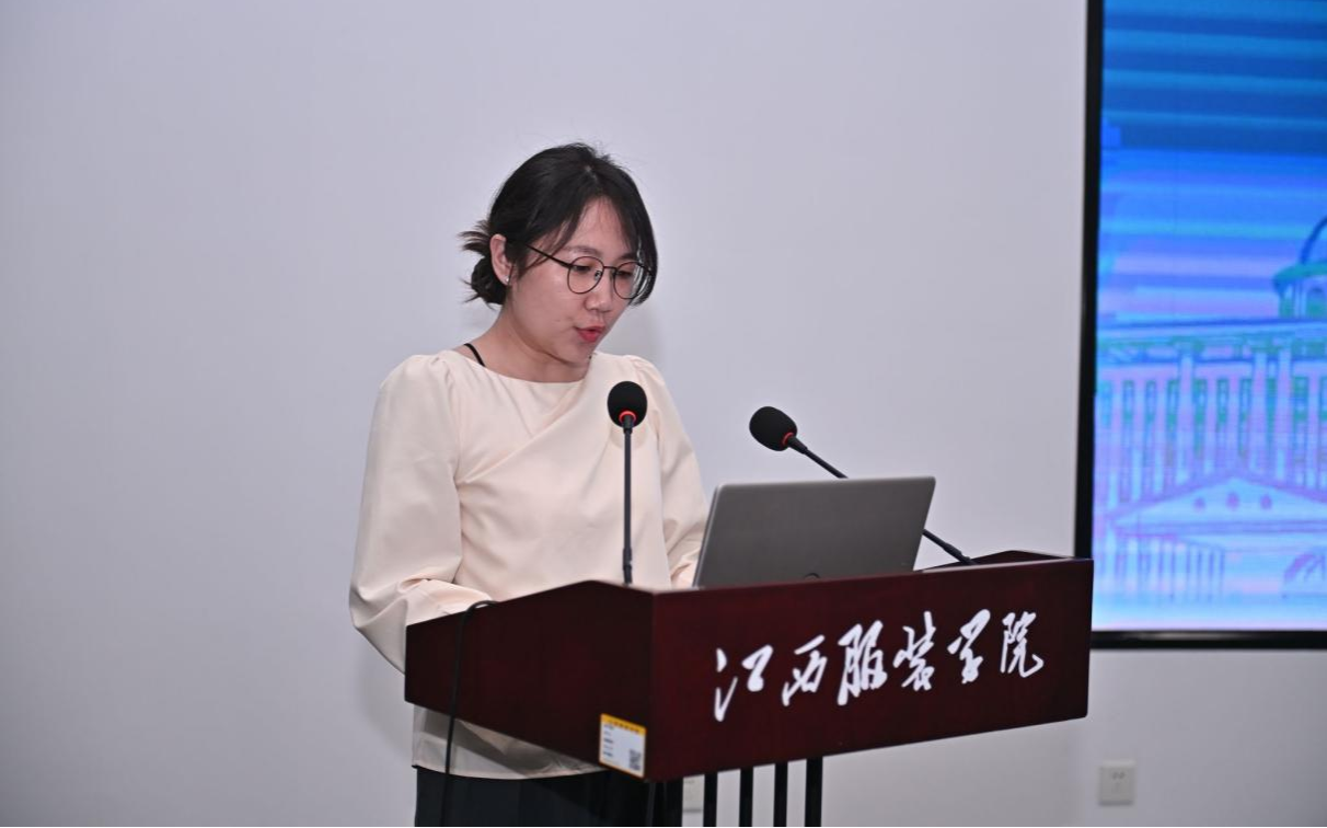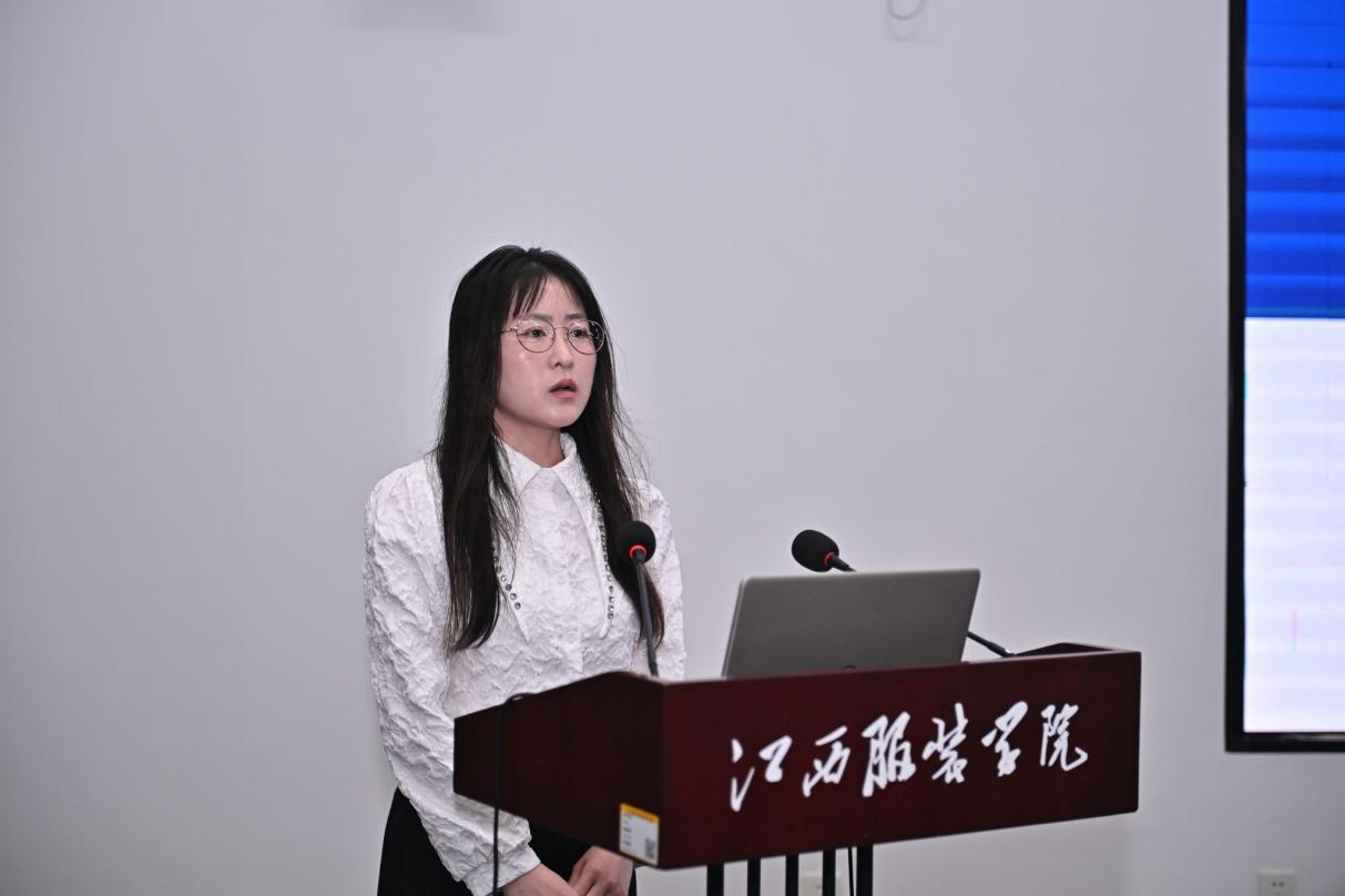 贺梦娟博士以“吸波型电磁屏蔽织物:从界面调控到多功能集成”为题作学术报告,探讨了纳米纤维网络覆层织物的制备技术与电磁屏蔽增强机制,展望了多功能集成纺织品在多学科推动下的未来发展趋势,为纺织服装领域的科技化发展提供了新思路。